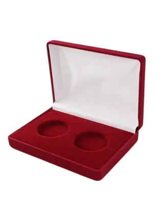 Футляр (142x102x42 мм) на 2 монеты в капсулах (диаметр 46 мм), светло-бордовый
