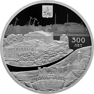 Монета «300-летие основания г. Перми», СПМД, 2023 г., Серебро, 31,1 гр., проба 925, РОССИЯ