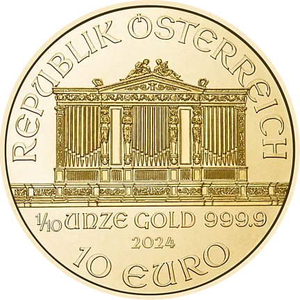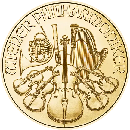 Венский филармонический оркестр играет первую скрипку в концерте инвестиционных монет. Он самая успешная европейская инвестиционная золотая монета и, по данным Всемирного совета по золоту в 1992 г., Самая продаваемая золотая монета в мире в 1995, 1996 и 2000 годах. История и дизайн монет 10 октября 1989 года в магазинах появилась первая Венская филармония. Начиная с первой чеканки, на одной стороне монеты изображены инструменты знаменитого Венского оркестра, а именно валторна, фагот, арфа, виолончель посередине, альт слева и справа и скрипка сверху. С другой стороны находится орган в большом зале Музикферайн (часто также известный как «Золотой зал»), который известен по новогоднему концерту Монета была разработана главным гравером Австрийского монетного двора Томасом Пезендорфером.
